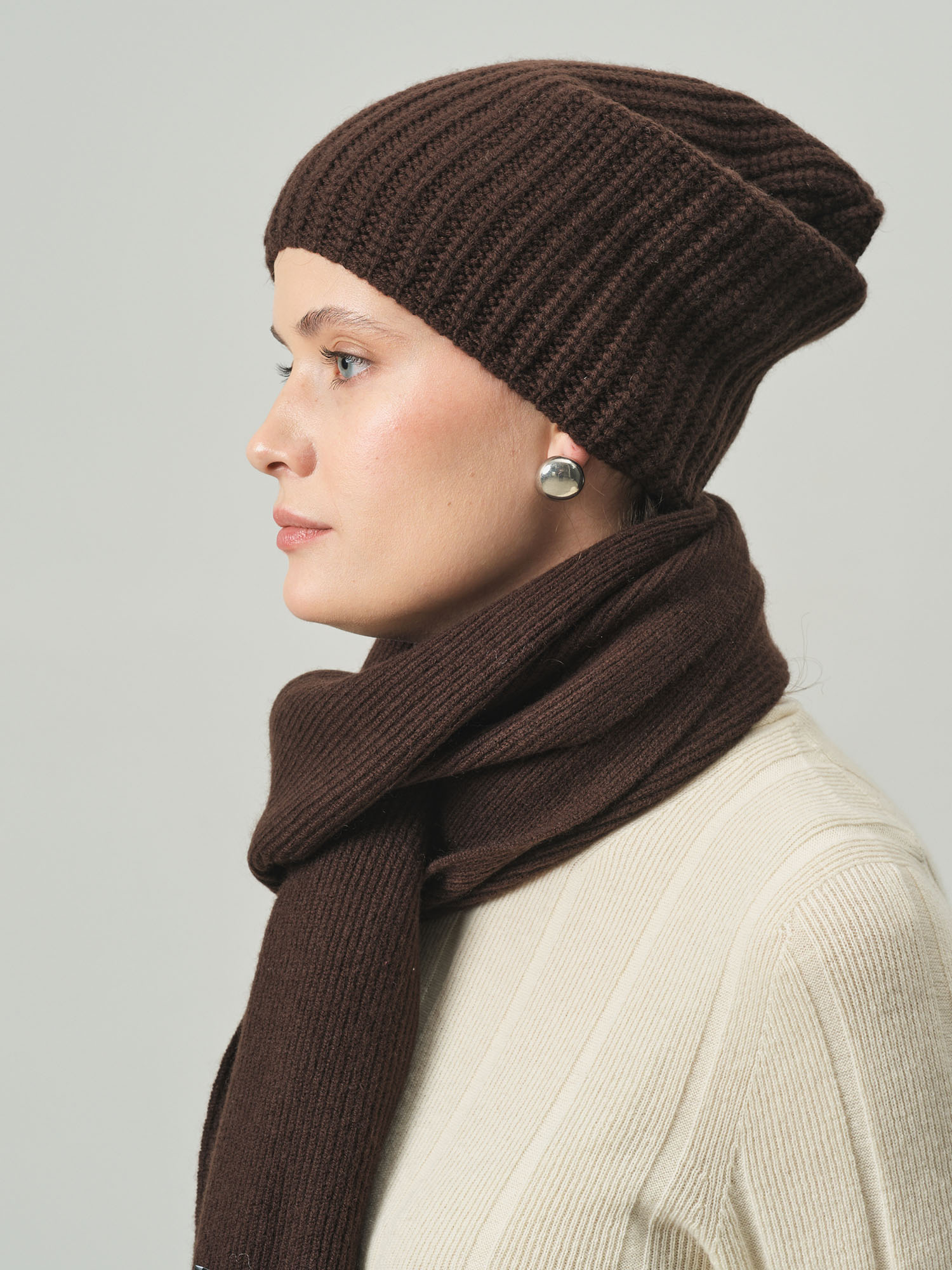 Лаконичная и элегантная шапка из натурального кашемира, созданная для комфорта в холодное время года. Модель мягко облегает голову, сохраняет тепло и дополняет как повседневные, так и более утончённые образы.