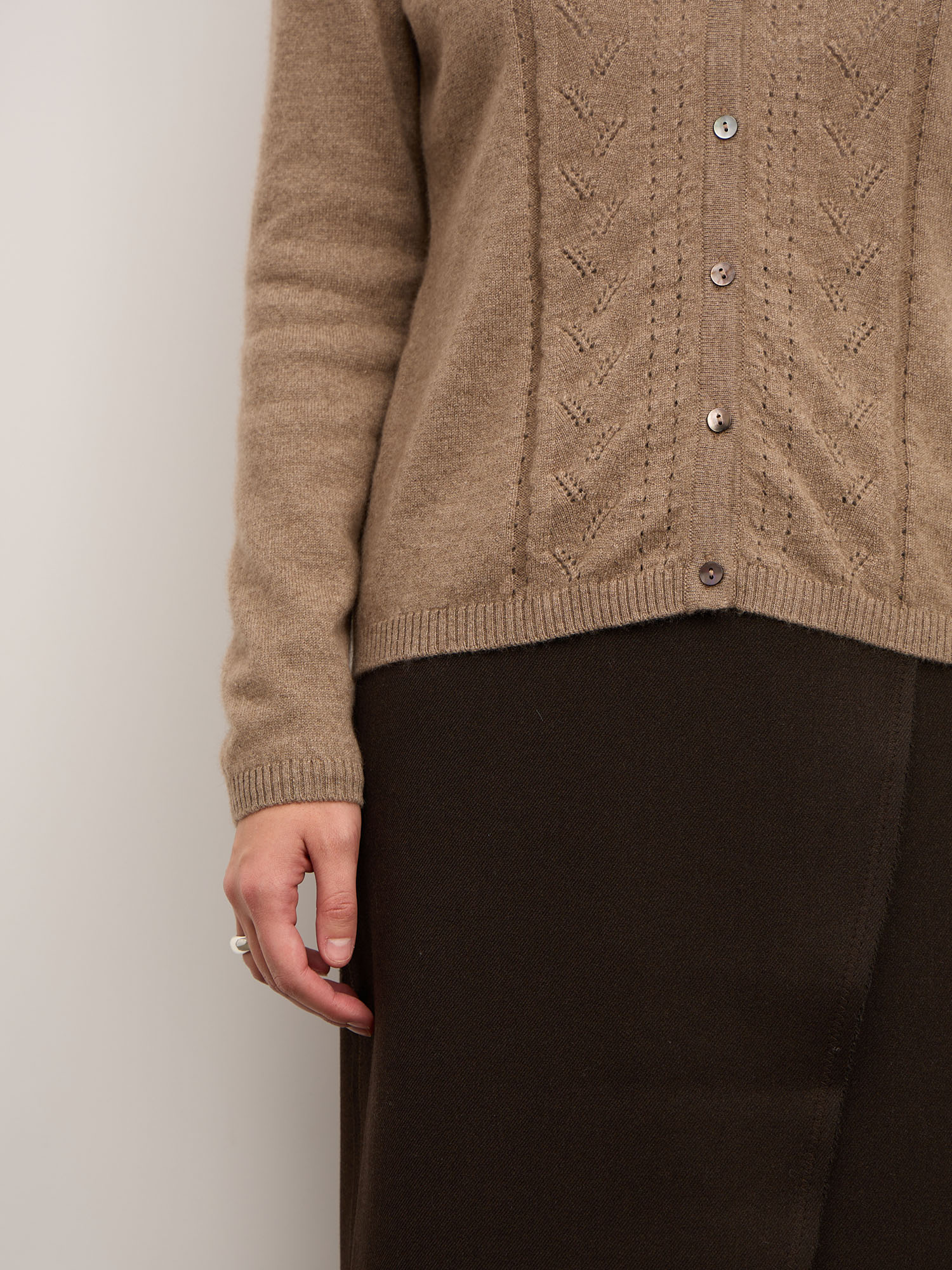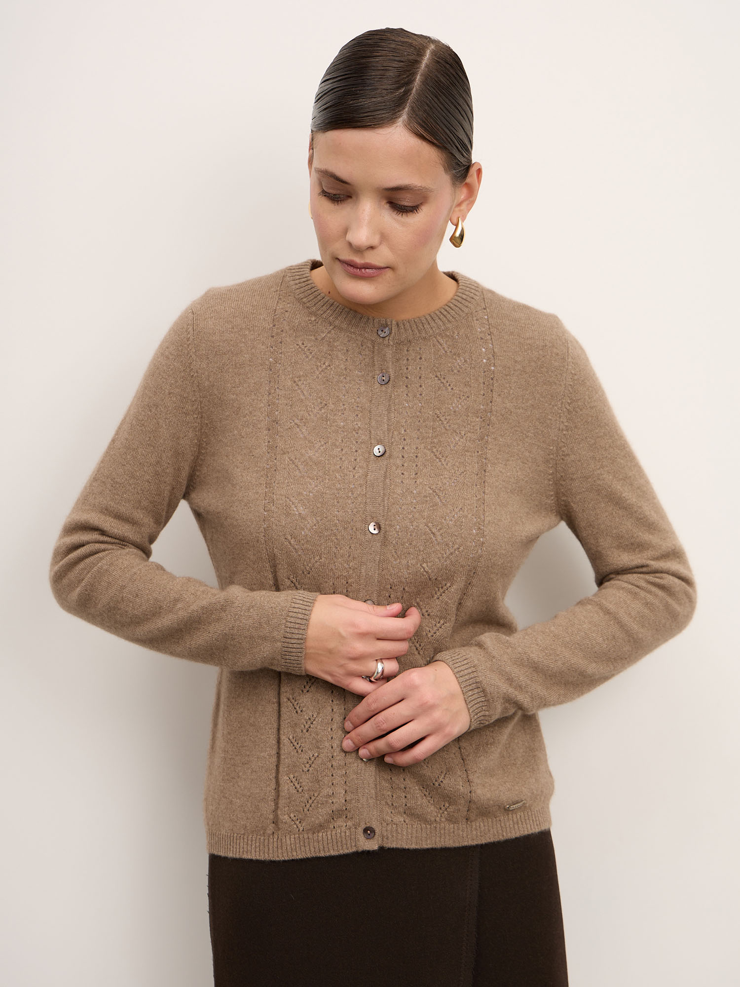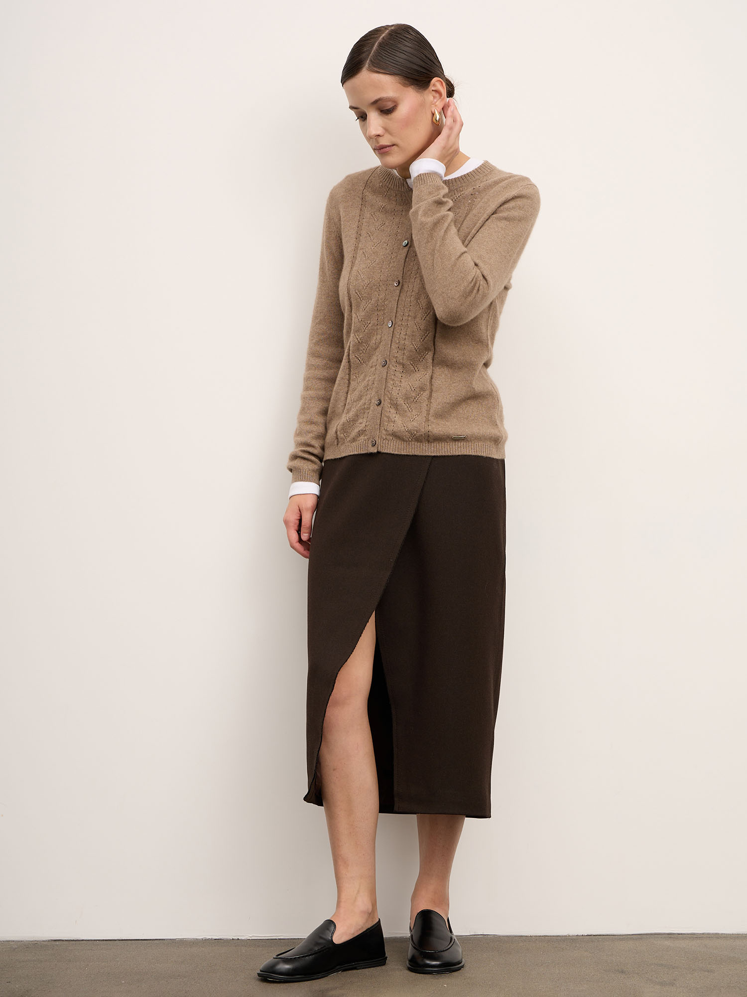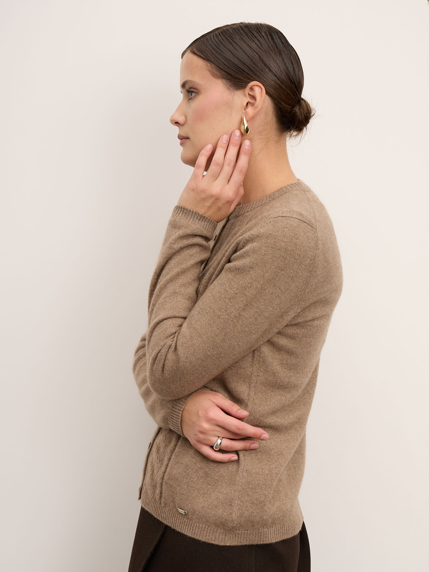 Кардиган из кашемира в оттенке капучино — это классика, которая не выходит из моды. Он придаёт образу утончённость, дарит уют и ощущение природного тепла каждый день.
