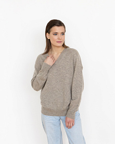 Я купила на свой 50-й размер пуловер размером 48-50. По размеру он подошел отлично. Мне нравится, что он очень мягкий, чувствую себя в нем уютно. И очень легкий. Правда, не смогла к нему подобрать бижутерию, к такому вырезу. Наверное, буду носить просто так, как на фото, или с платком. |