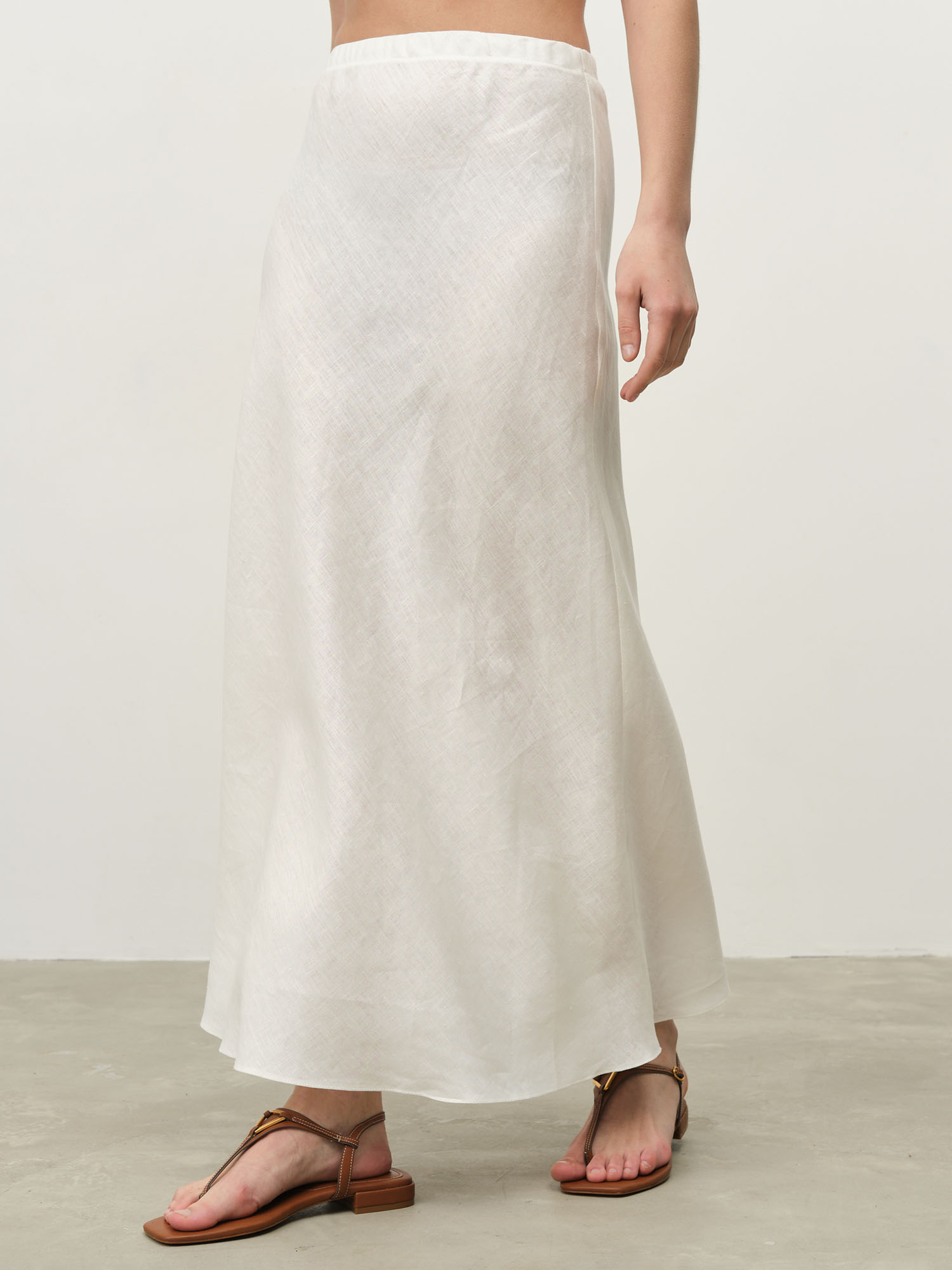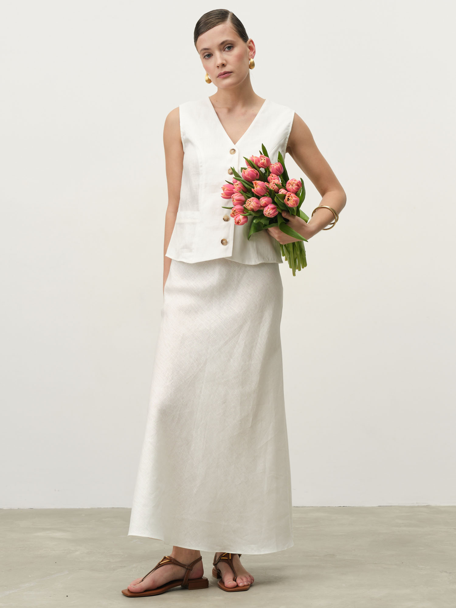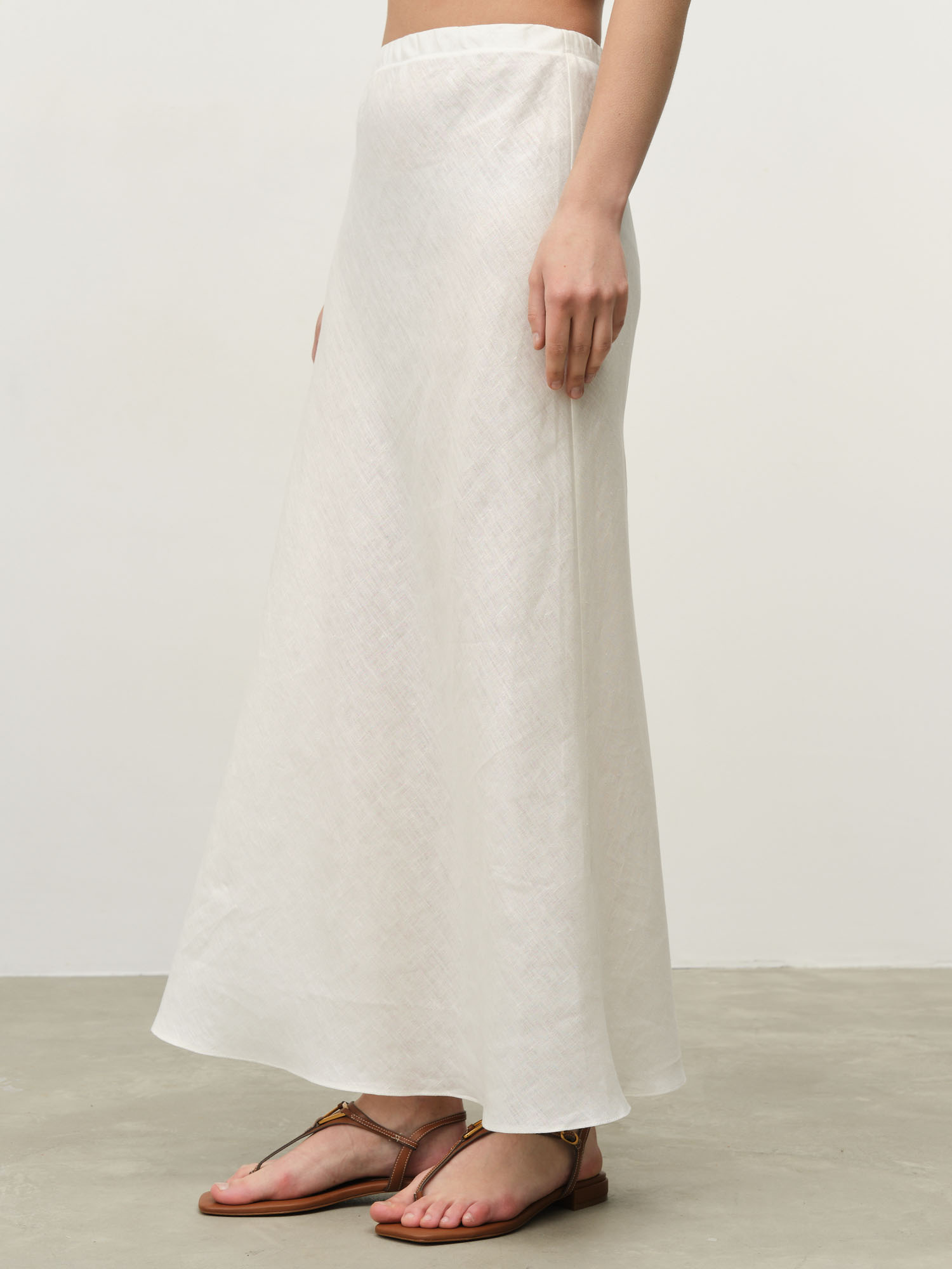 Элегантная льняная юбка в нежном оттенке айвори — это воплощение летней легкости и натуральной роскоши для современных женщин.