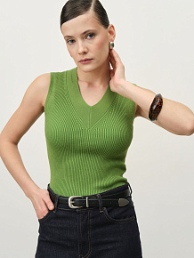 Без рукавов, эластичная структура ткани, фактурный узор, аккуратная обработка краёв, комфортная посадка.