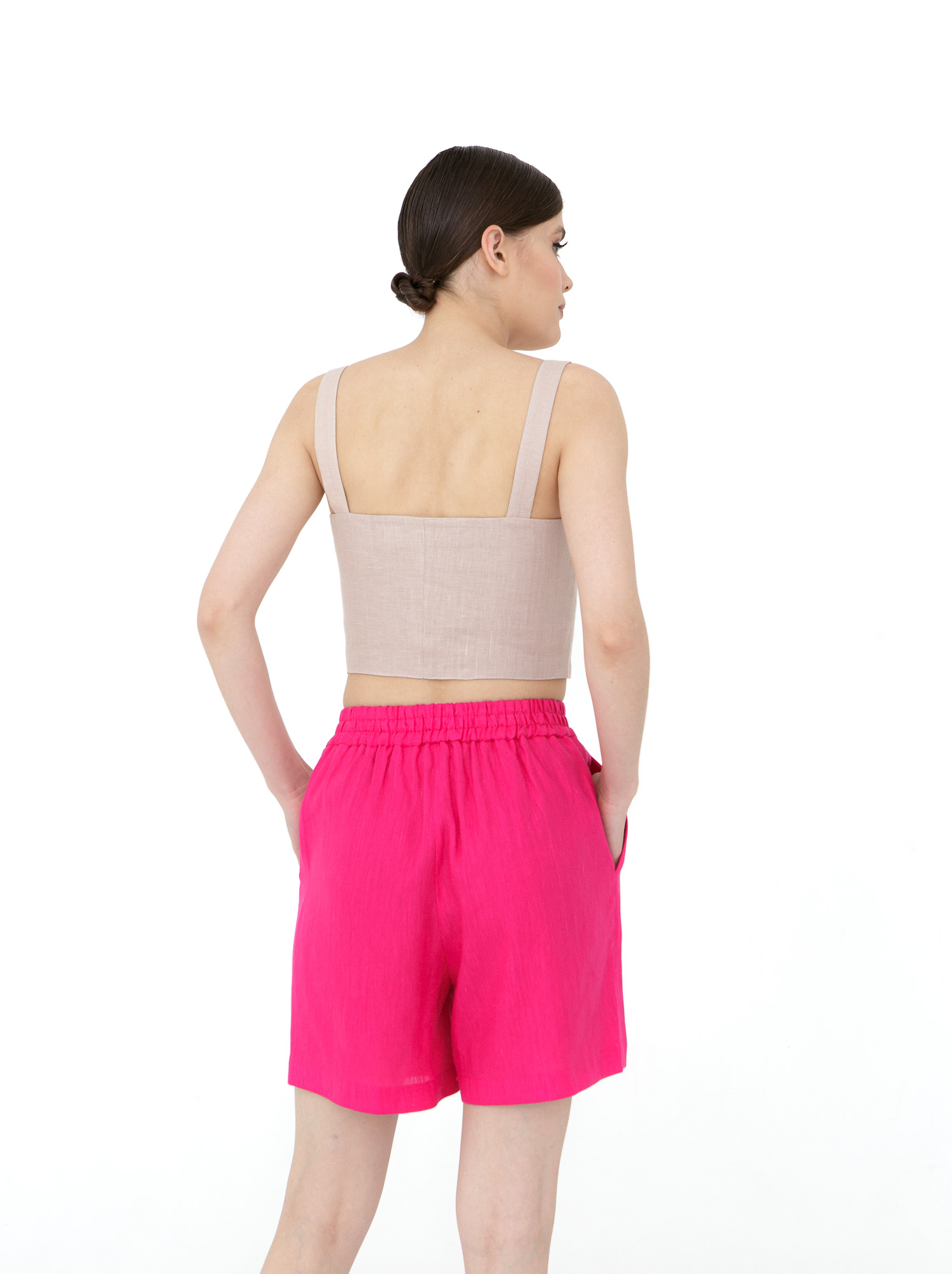 Топ отлично сочетается с юбками, шортами и брюками из льна или хлопка. Для повседневного образа — с сандалиями и легкими аксессуарами, для более элегантного — с жакетом и обувью на каблуке. Подходит для прогулок, отдыха и летних поездок.