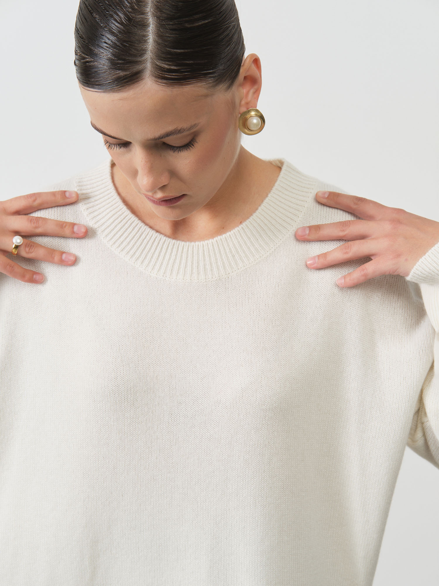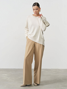Изысканный кашемировый джемпер свободного кроя в мягком кремовом тоне представляет собой идеальное воплощение элегантности и практичности. Премиальный кашемир 100% состава демонстрирует исключительные характеристики: деликатную мягкость, эффективную терморегуляцию и превосходную воздухопроницаемость. Материал создает приятные тактильные ощущения и обеспечивает оптимальный тепловой баланс.